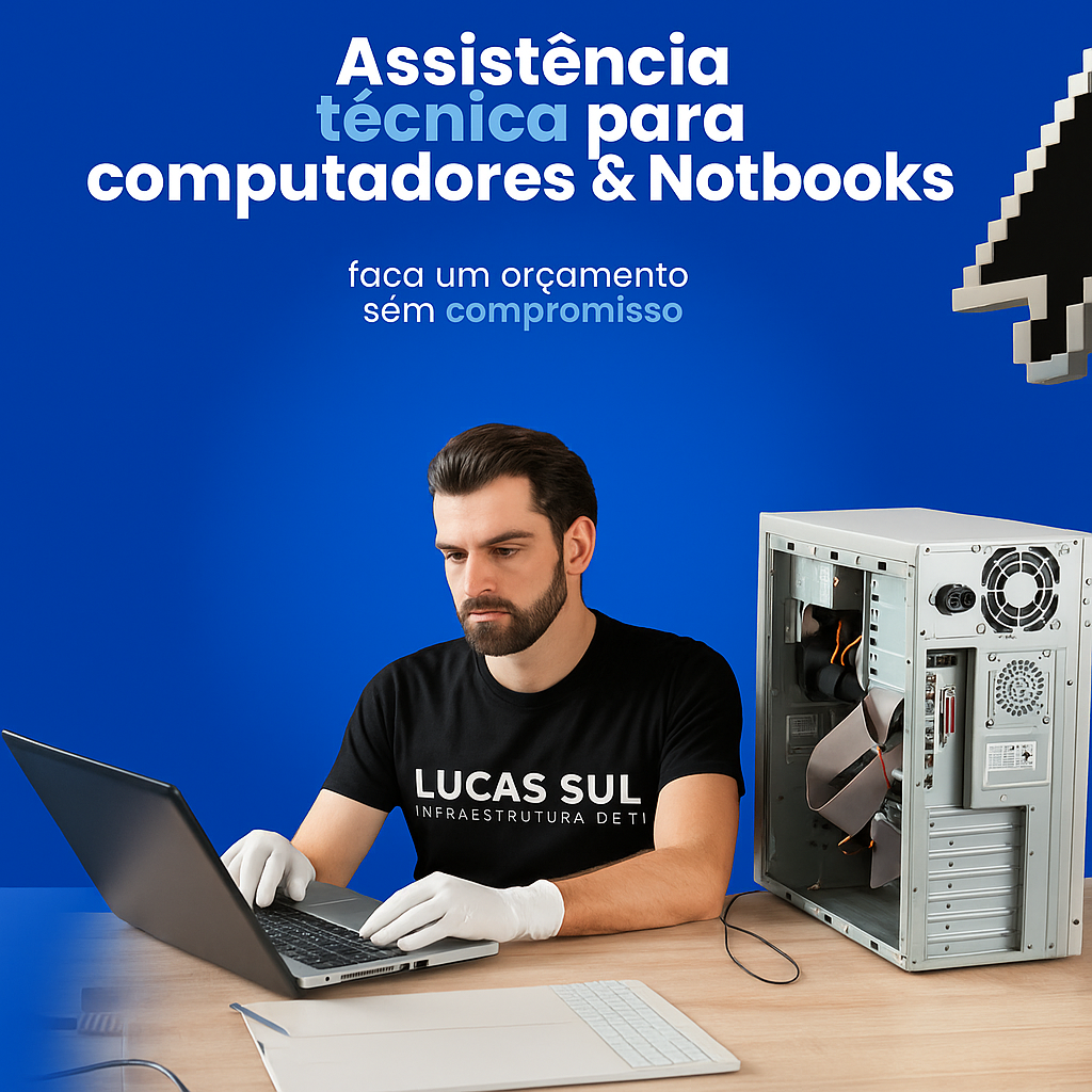 Na Lucas Sul Infraestrutura de TI, oferecemos manutenção completa e suporte técnico profissional para computadores e notebooks. Trabalhamos com diagnóstico preciso, reparos rápidos e upgrades personalizados, garantindo o máximo desempenho dos seus equipamentos.